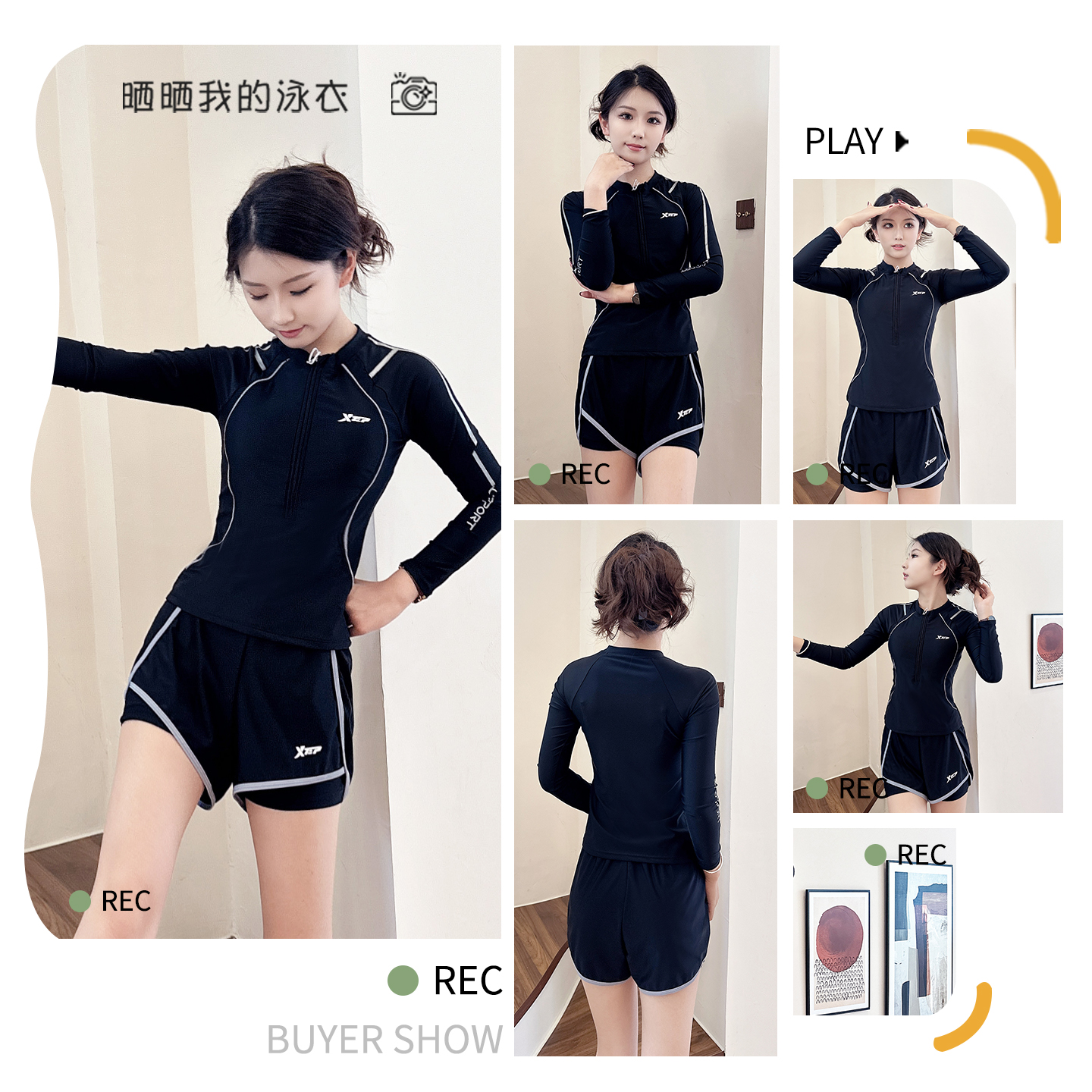 保守显瘦女孩平角遮肚游泳训练度假装 特步长袖 泳衣分体2025年新款