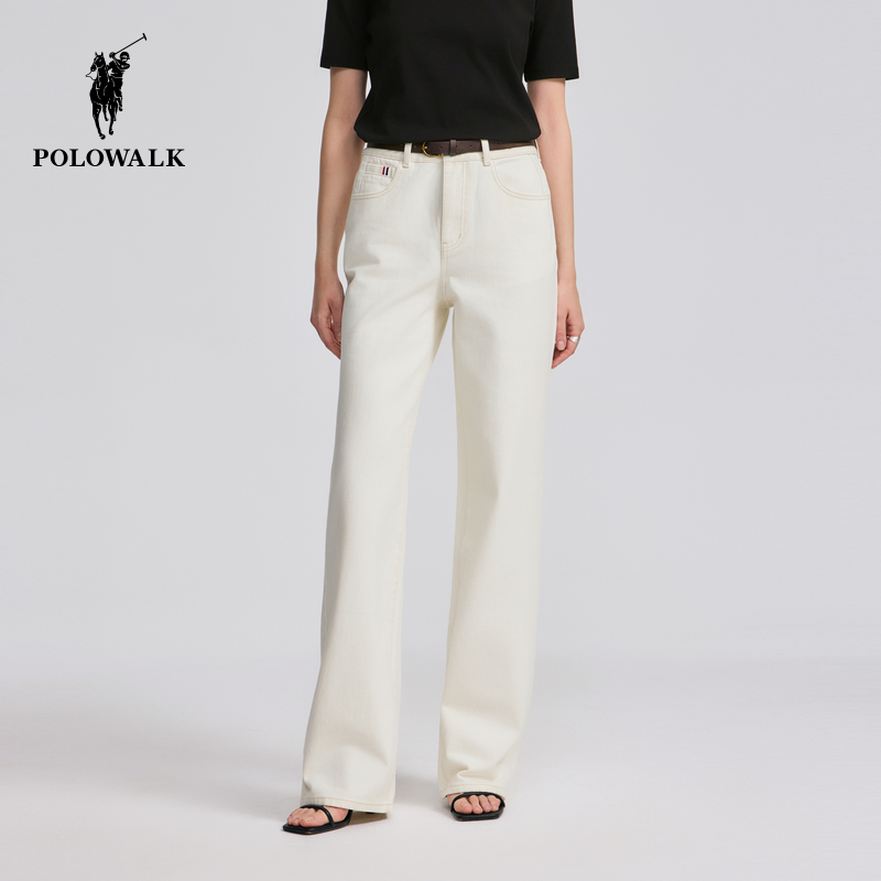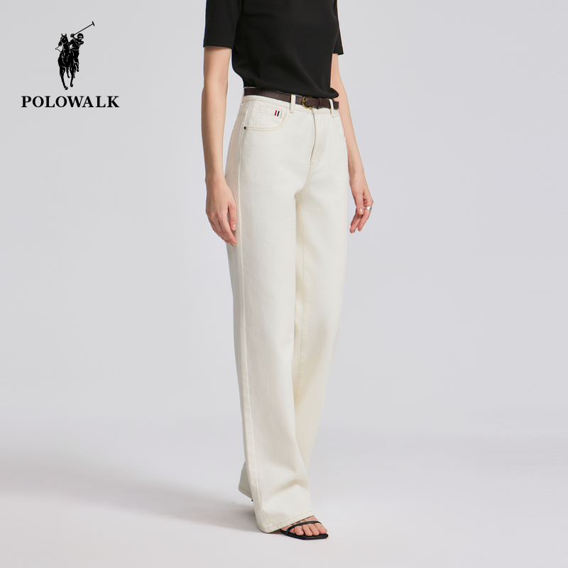 宽松百搭通勤白色裤 POLOWALK女装 直筒阔腿牛仔裤 新品 子 2025秋冬裤