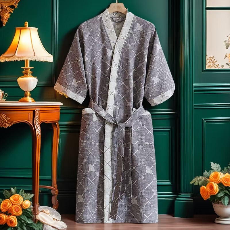 纯棉浴袍双层纱浴衣男女士吸水夏季 宽松酒店睡袍情侣家居服 薄款
