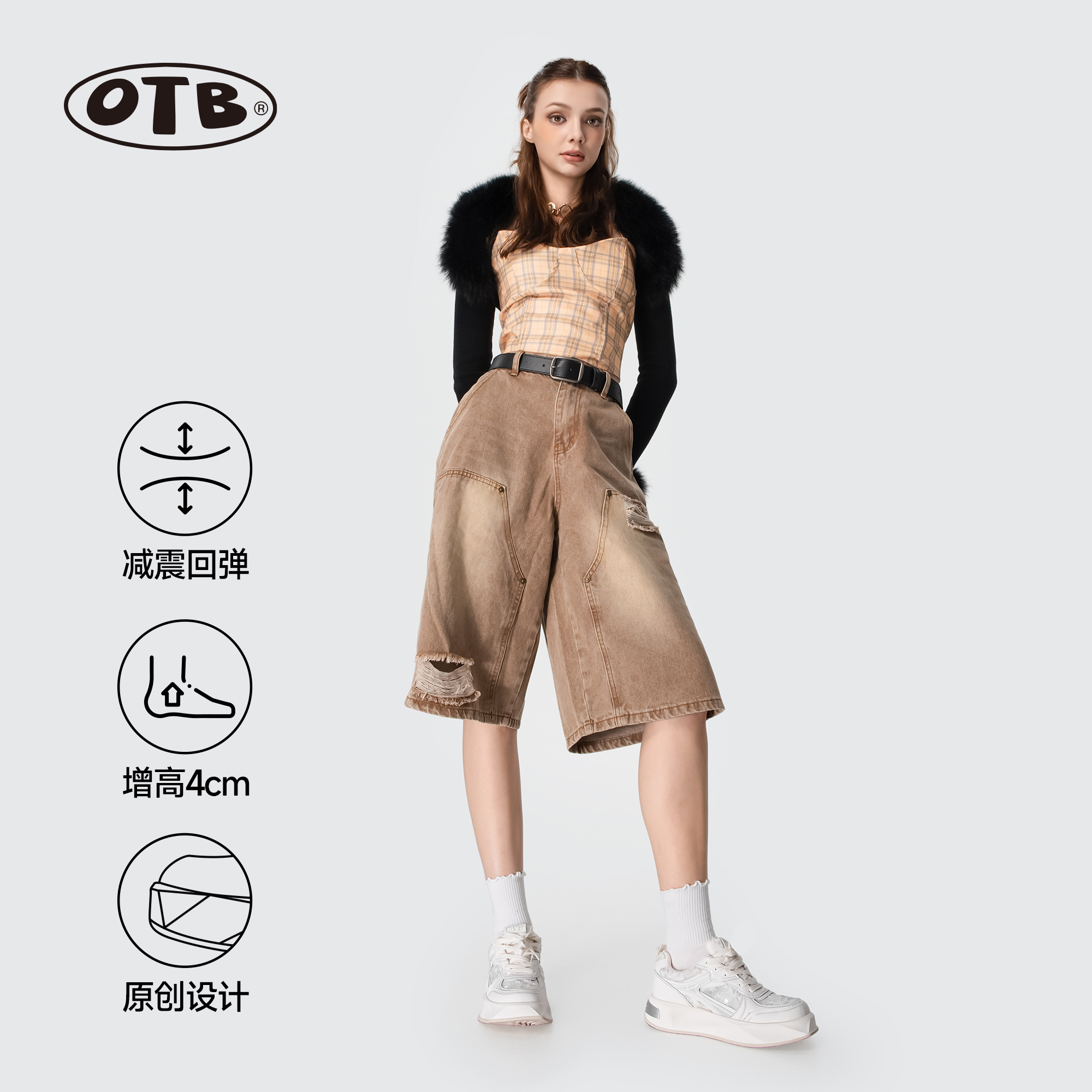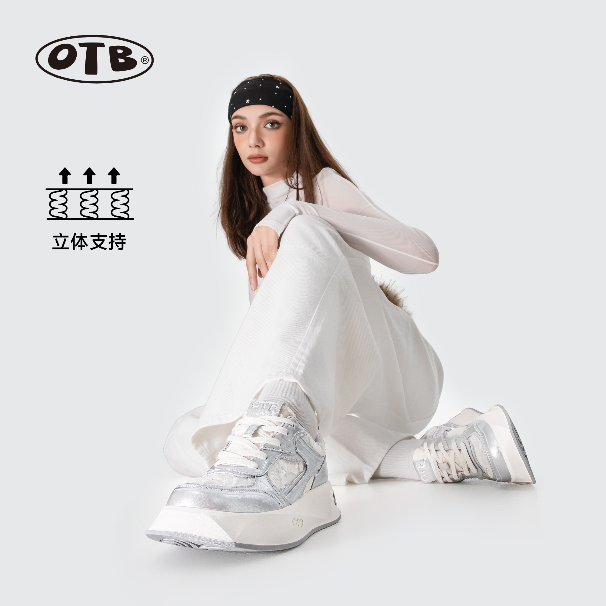 百搭轻便系带女增高小白像素鞋 网面休闲运动时尚 几何板鞋 OTB