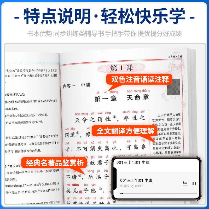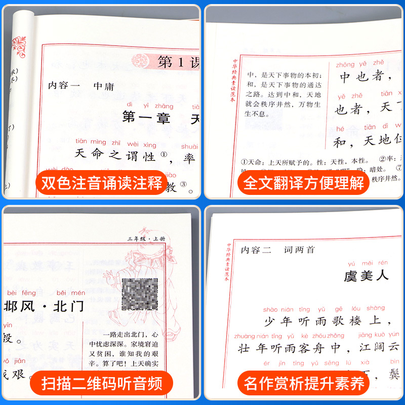 YY中华经典 素读范本一年级二年级三年级四年级五年级六年级上册下册全套陈琴小学生语文同步教材古诗文国学诵读诗歌朗诵阅读背诵读