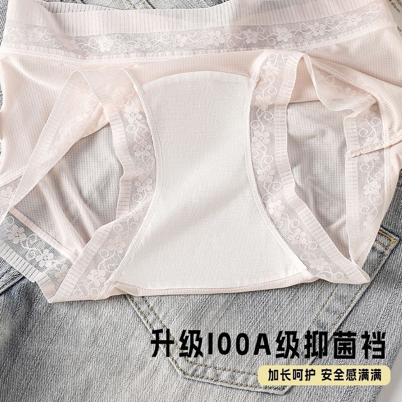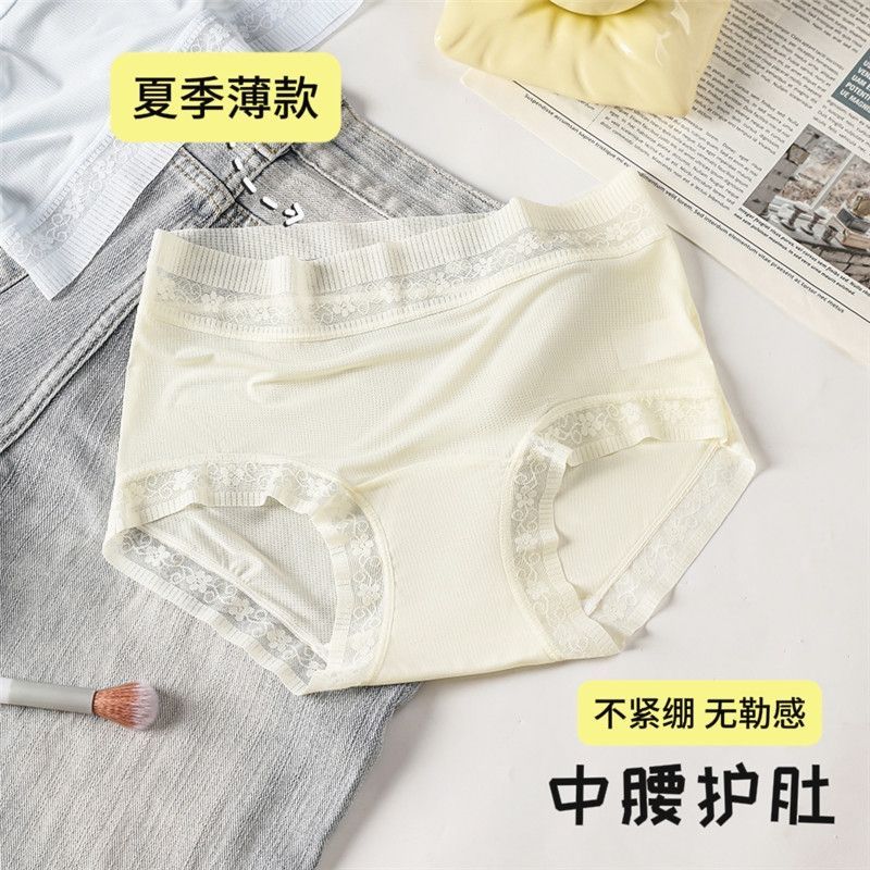 女精致蕾丝花边纯欲小清新凉感透气少女 冰丝裸感中腰内裤 夏季 薄款