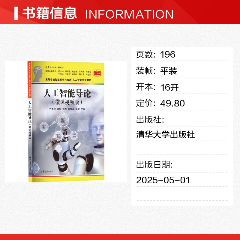 智能科学与技术 计算机 清华大学出版 微课视频版 社9787302688778 书籍 人工智能 本科生教材正版 人工智能导论 自动化及相关专业