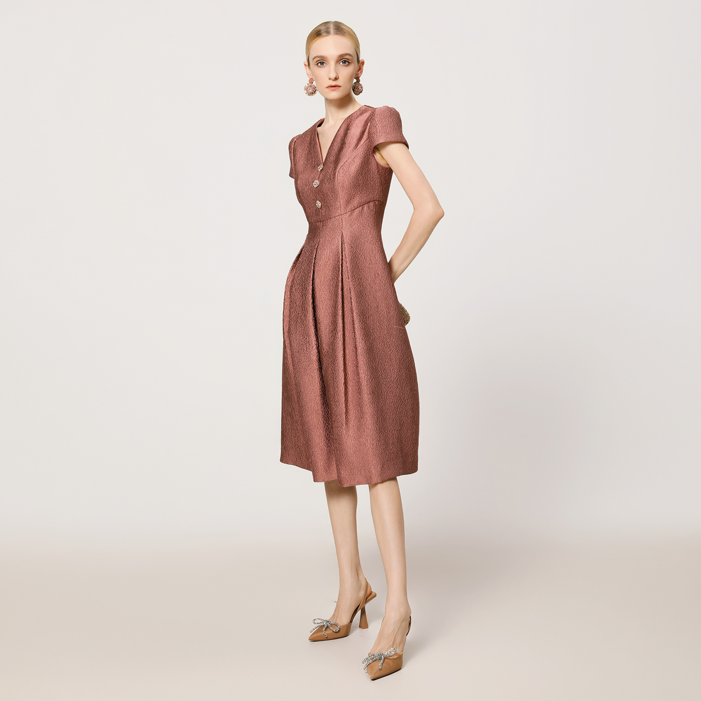 酒红喜婆婆婚宴装 高端名媛收腰显瘦A字裙 连衣裙女2025年早秋新款