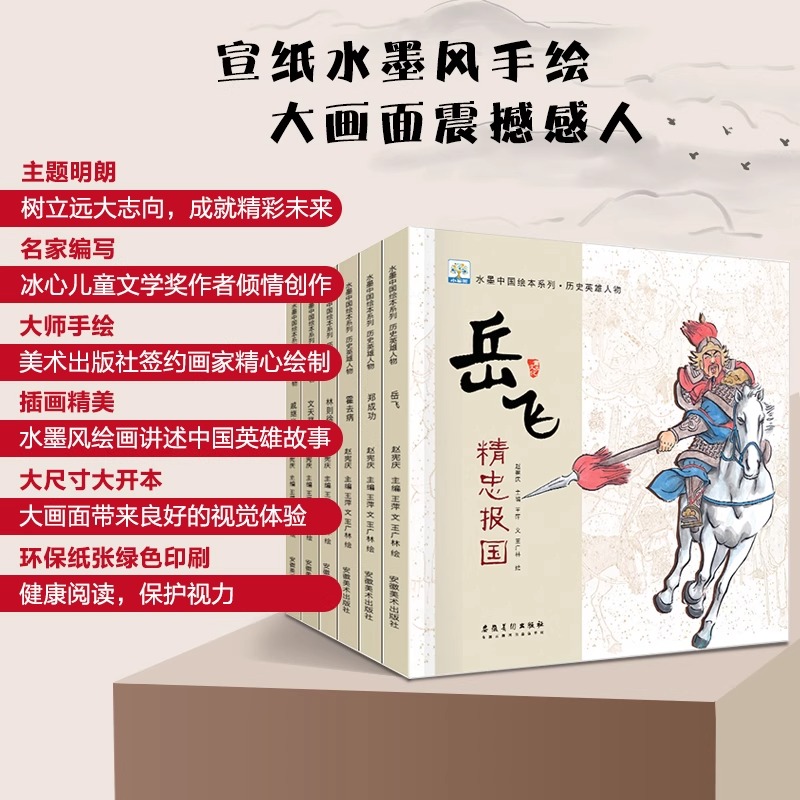 满江红岳飞精忠报国绘本中国古代名人故事历史英雄人物传记林则徐霍去病郑成功文天祥3 8岁幼儿园宝宝儿童读物一年级课外阅读书