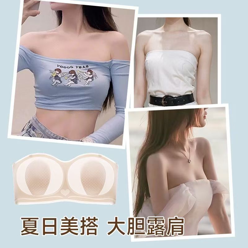 无肩带前扣聚拢内衣女防滑隐形无痕粉底液胸罩背心式 美背文胸 夏季