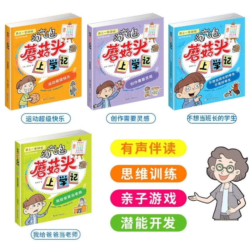 赠音频 淘气包蘑菇头上学记全4册小学生一年级语文课外阅读故事书