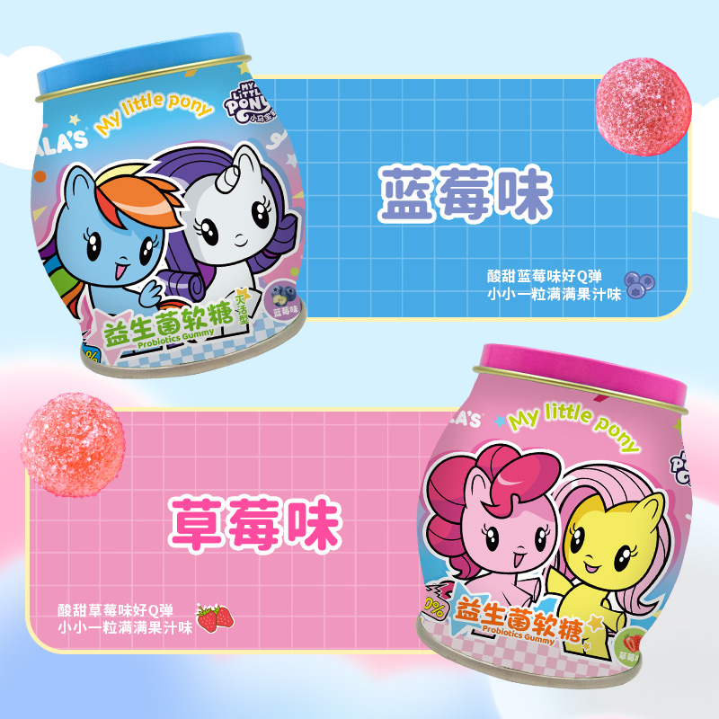 小马宝莉益生菌软糖99g灭活型罐装 草莓味儿童糖果宝宝零食小吃