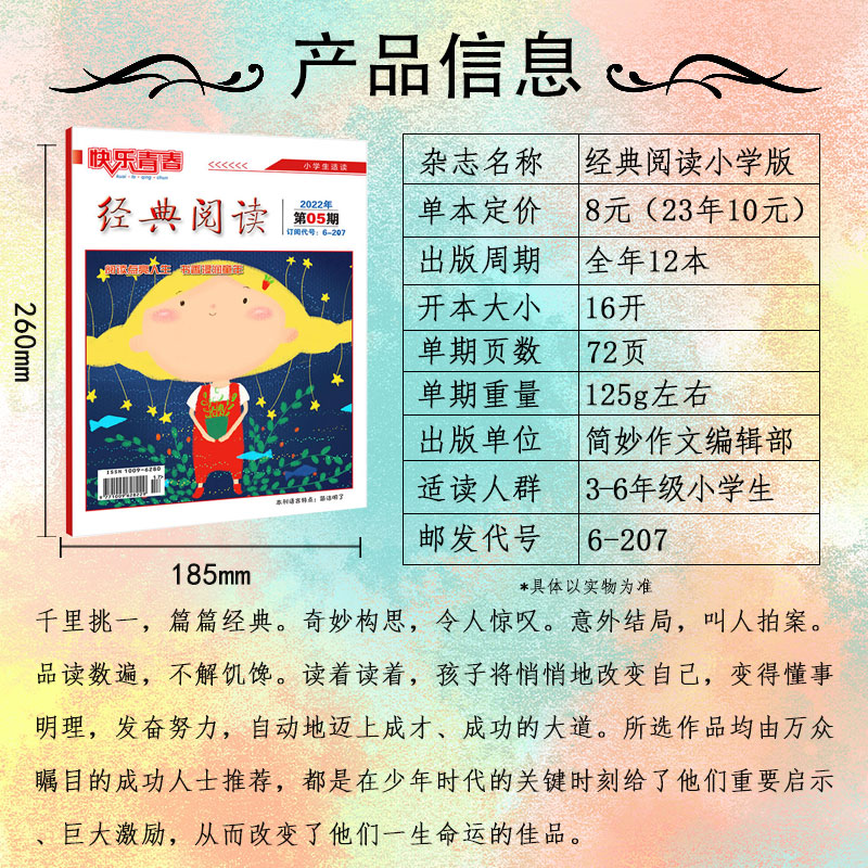 阅读小学版 经典 杂志2025 2024年1 半年订阅儿童文学杂志作文素材小学生三四五六年级文学文摘快乐青春期刊 12月全年 6月新刊
