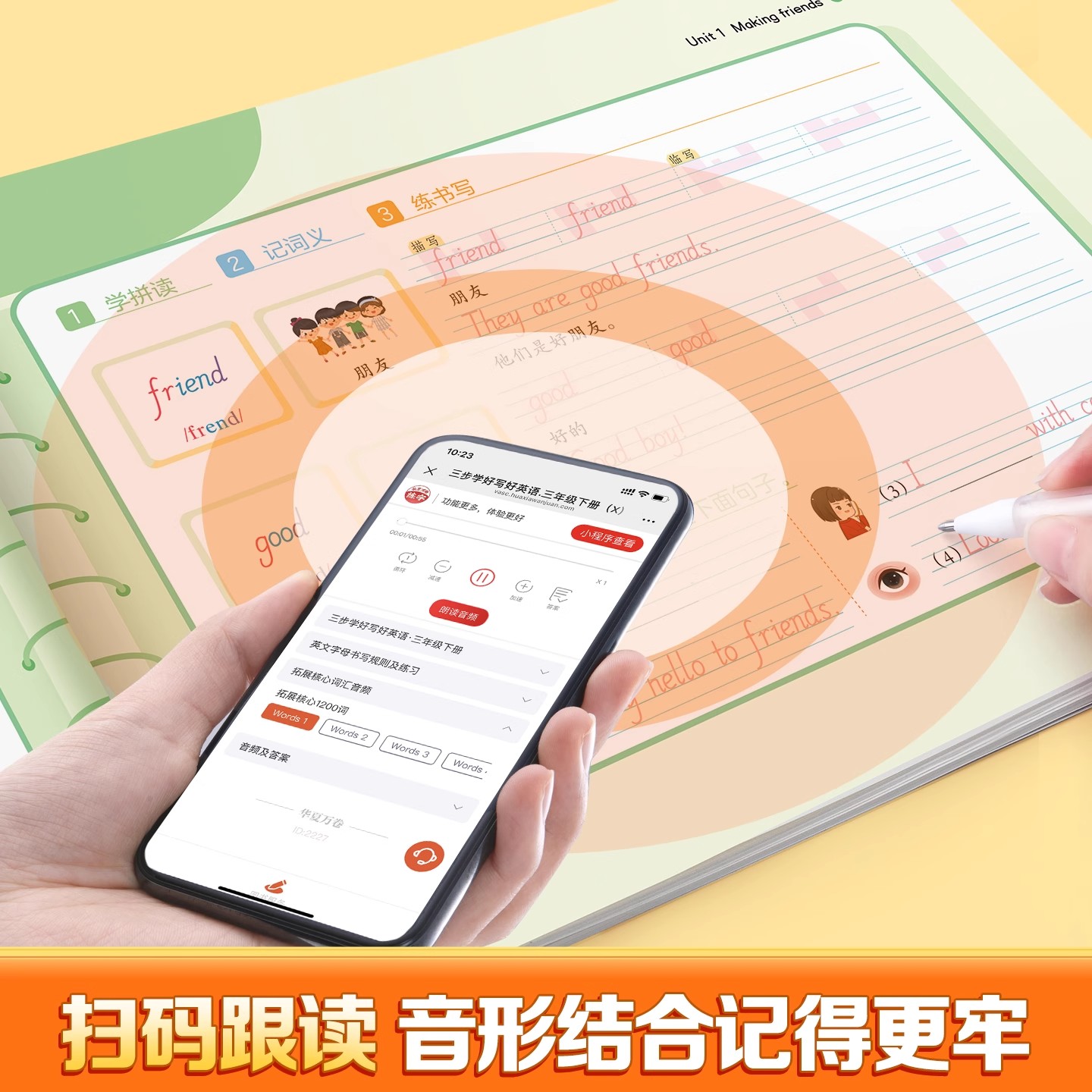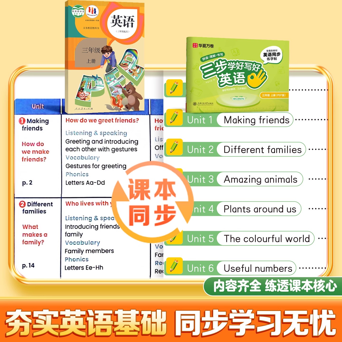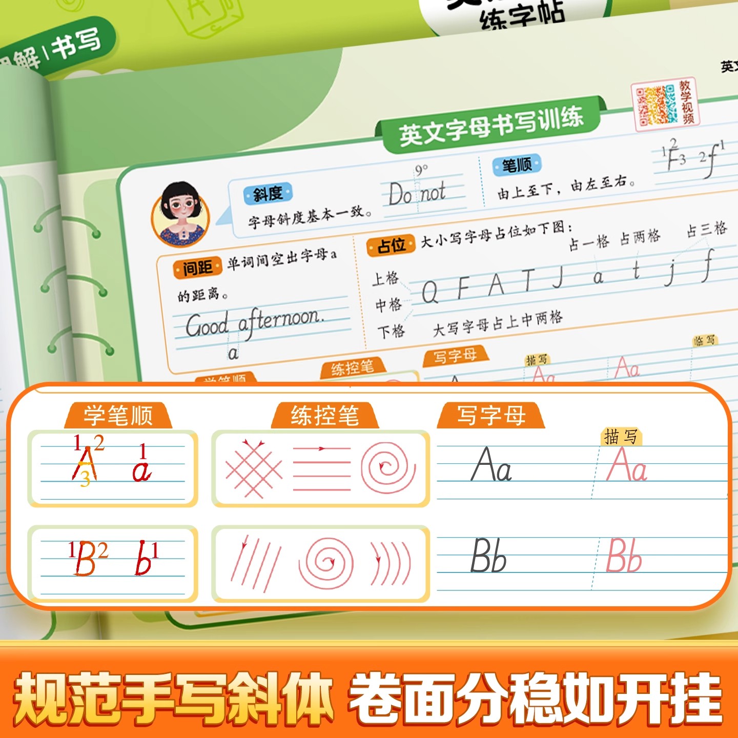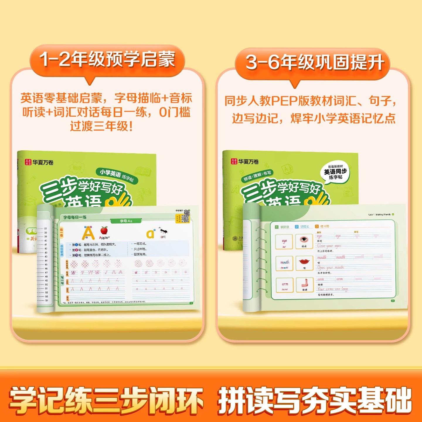 华夏万卷2025新版 同步教材小学英语手写斜体练字帖英文字母描红每日一练 适用三步学好写好英语三年级上册一二四五六年级下册人教版