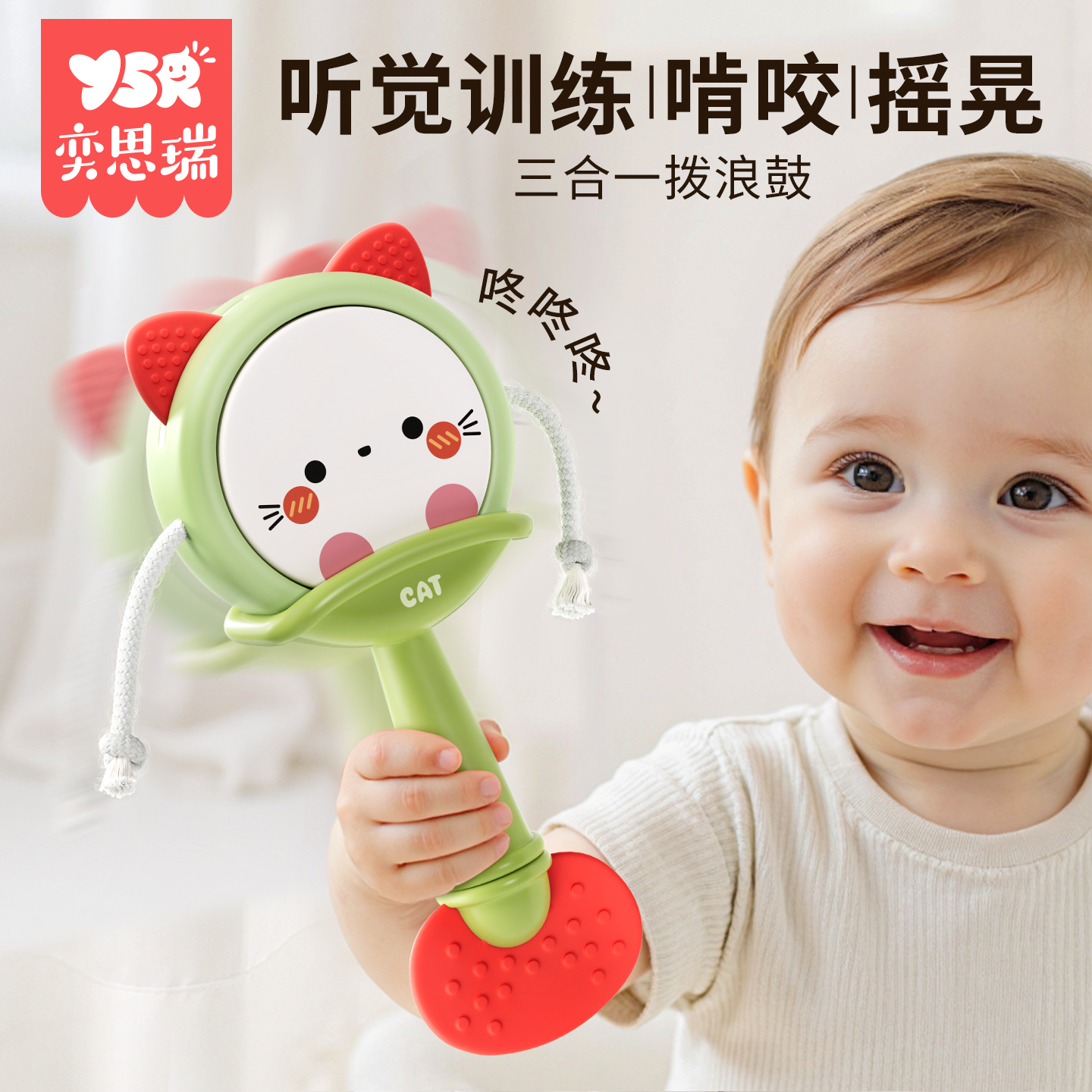 拨浪鼓婴儿沙锤玩具新生儿小月龄宝宝可啃咬硅胶抓握训练0到1岁
