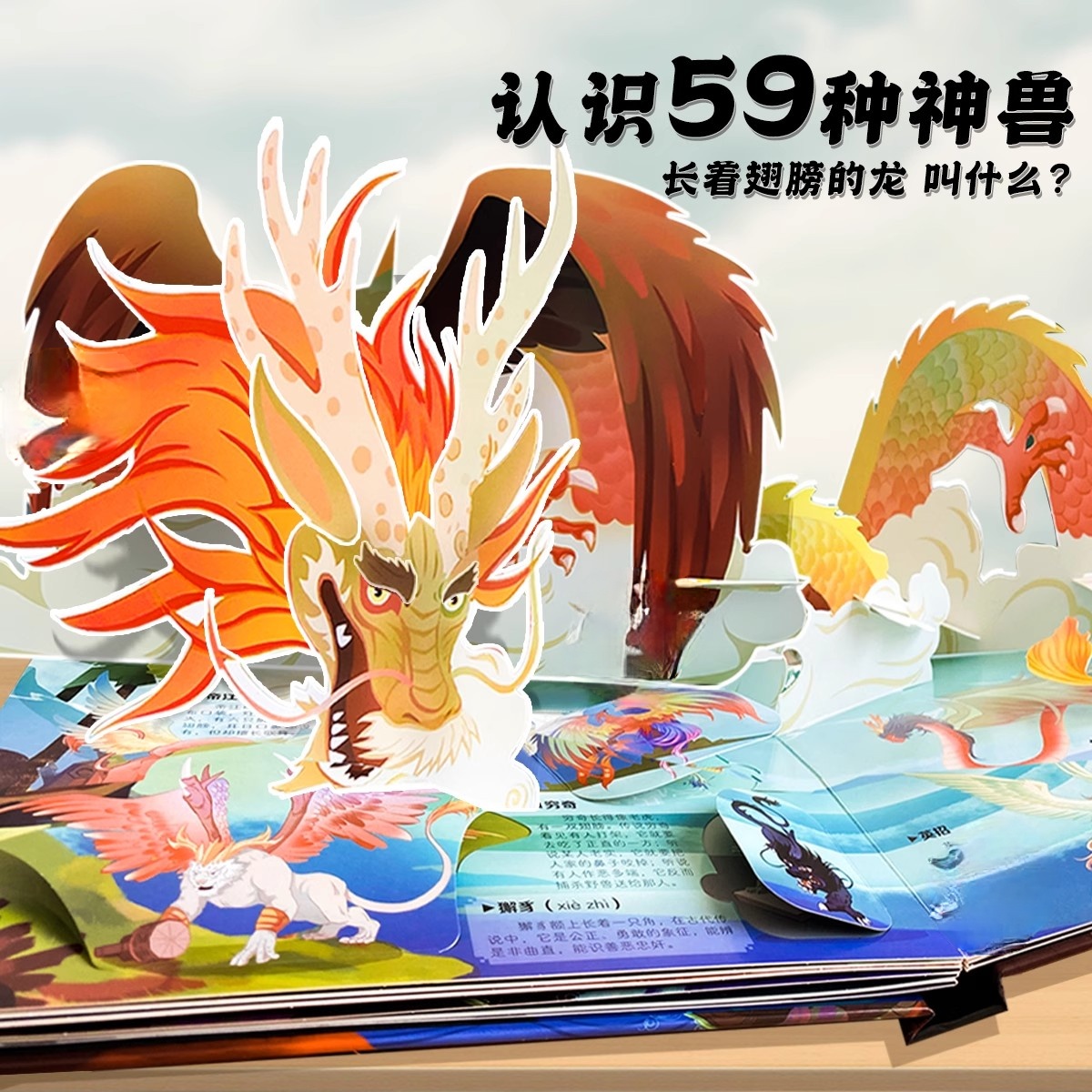 12岁传统文化早教启蒙故事科普绘本玩具 12岁幼儿益智人文启蒙读物趣味科普翻翻书山海经神兽立体翻翻书3 山海经儿童3d立体书2