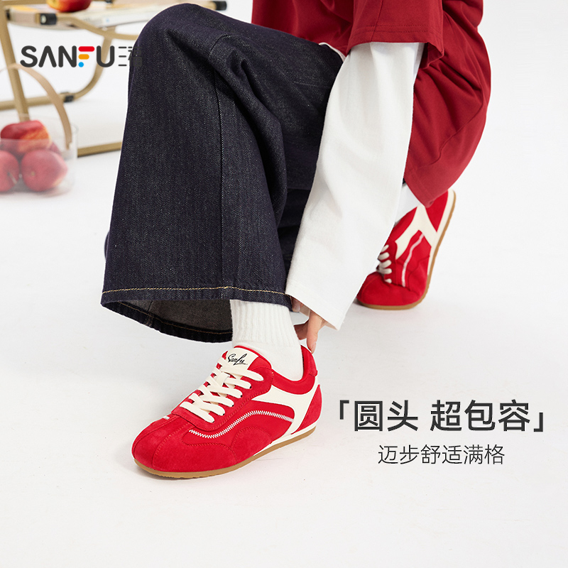 844083 复古韩系多彩拼接电绣薄底德训女鞋 三福低帮板鞋 秋季