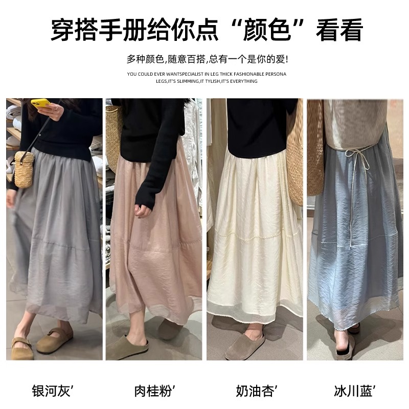 粉色雪纺半身裙女夏2025新款 显瘦气质纱裙 小个子高级感a字裙法式