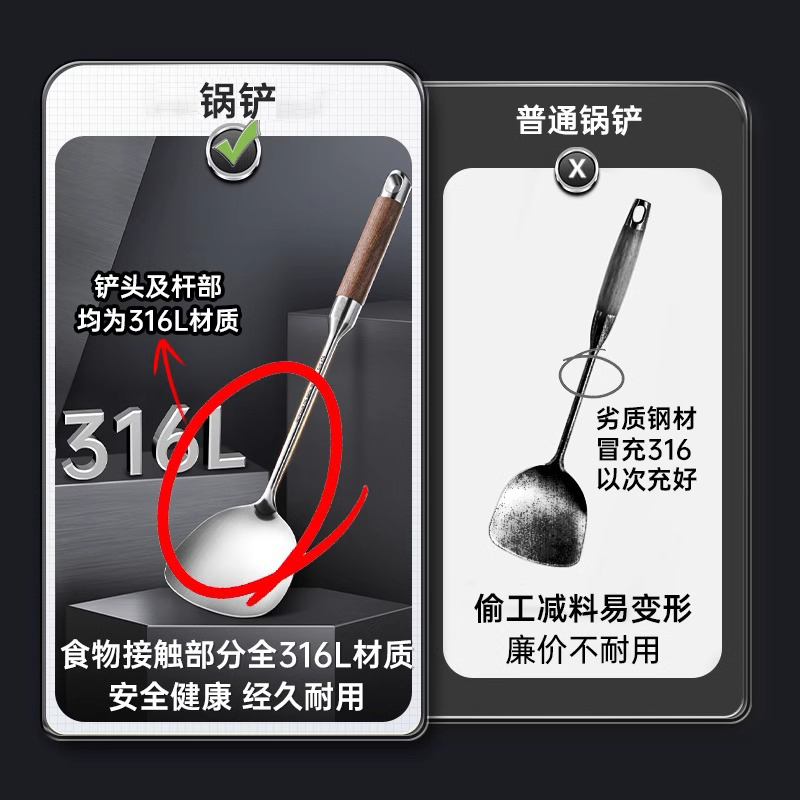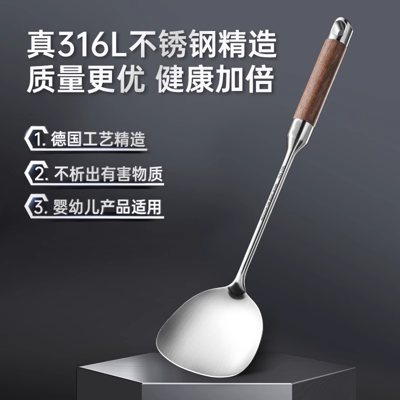 锅铲316L不锈钢加厚炒菜铲子漏勺汤勺家用厨具炒勺套装 铁铲