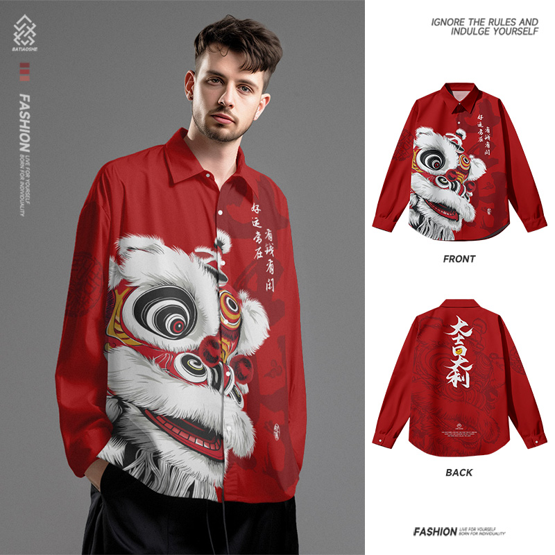 男秋高街cleanfit宽松衬衣青少年上衣 衬衫 V37美式 高级感纯白长袖