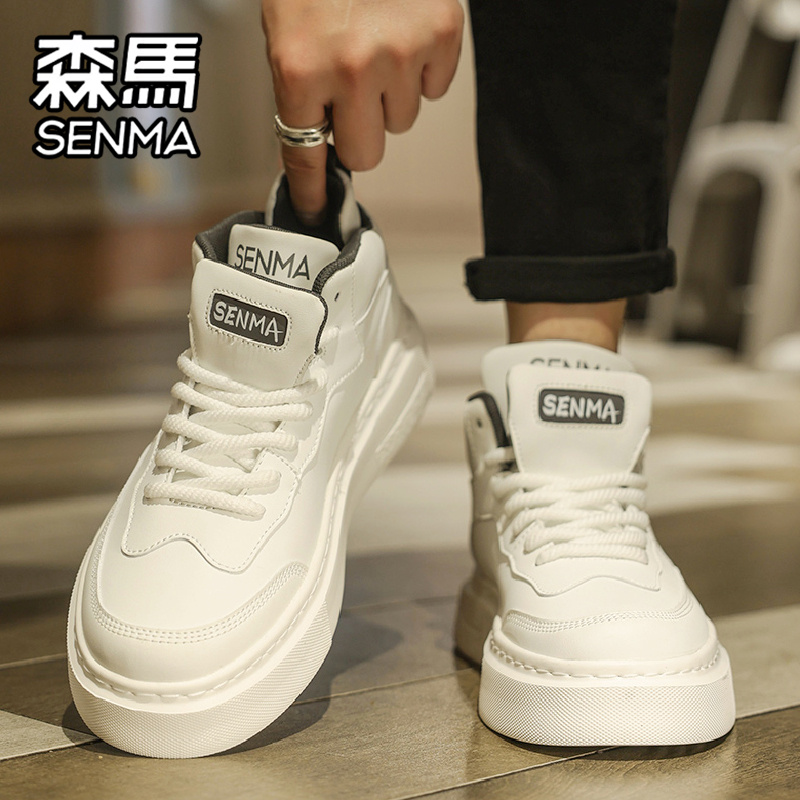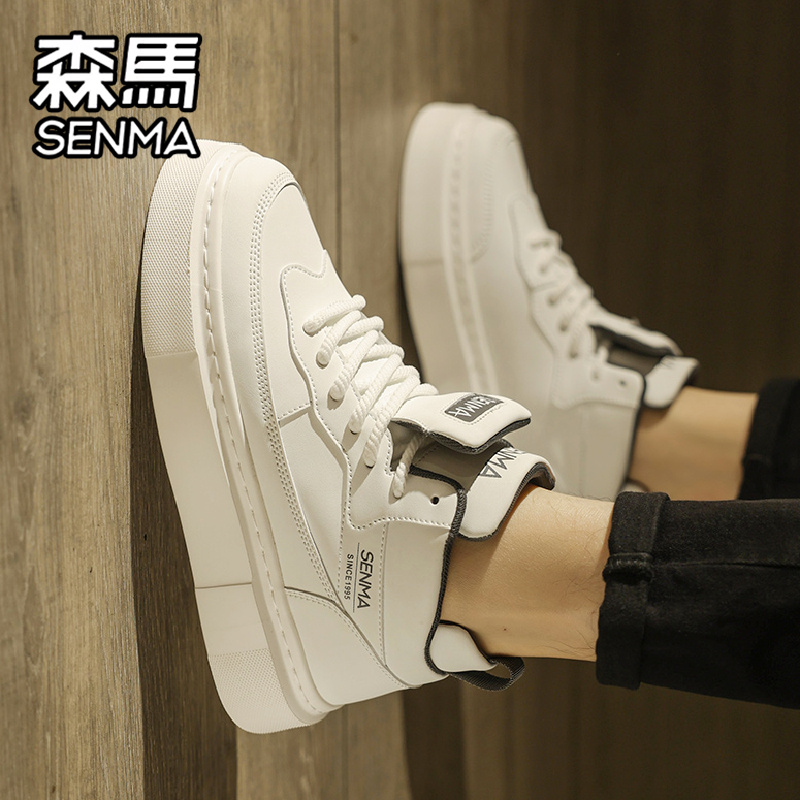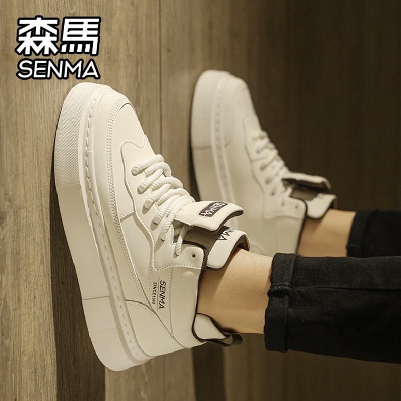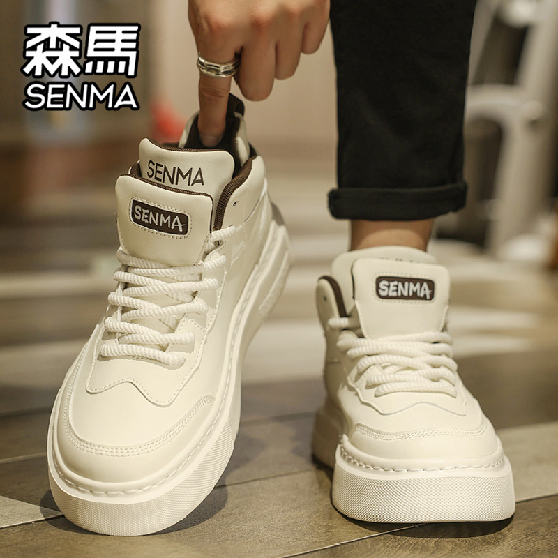 厚底增高真皮运动小白鞋 森马高帮男鞋 男士 高级感百搭休闲板鞋 秋季
