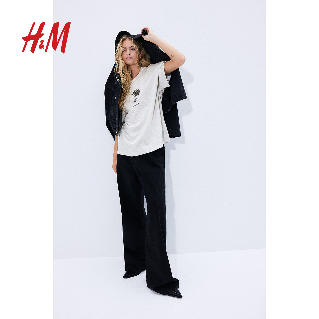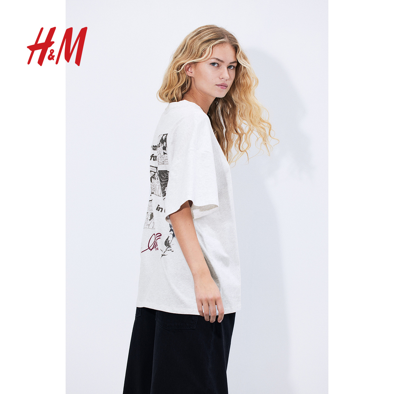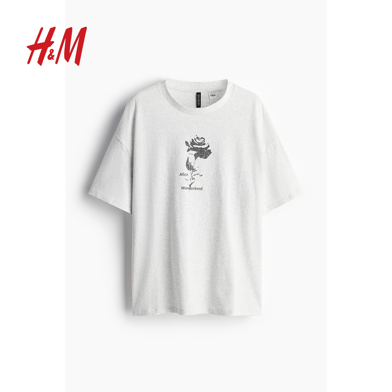 棉质柔软印花短袖 HM女装 宽松半袖 爱丽丝大码 上衣1227727 T恤秋季