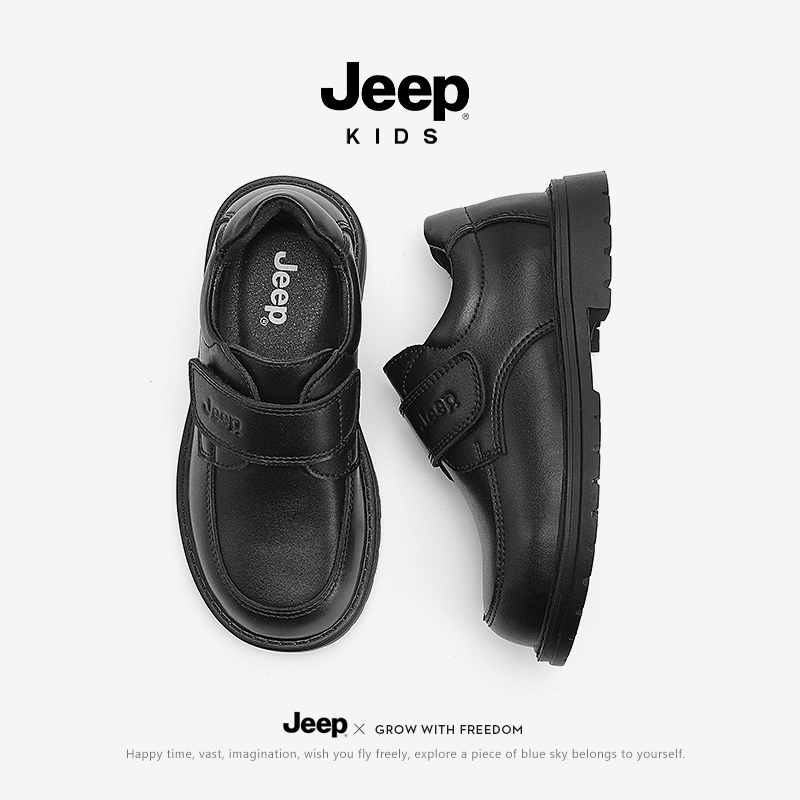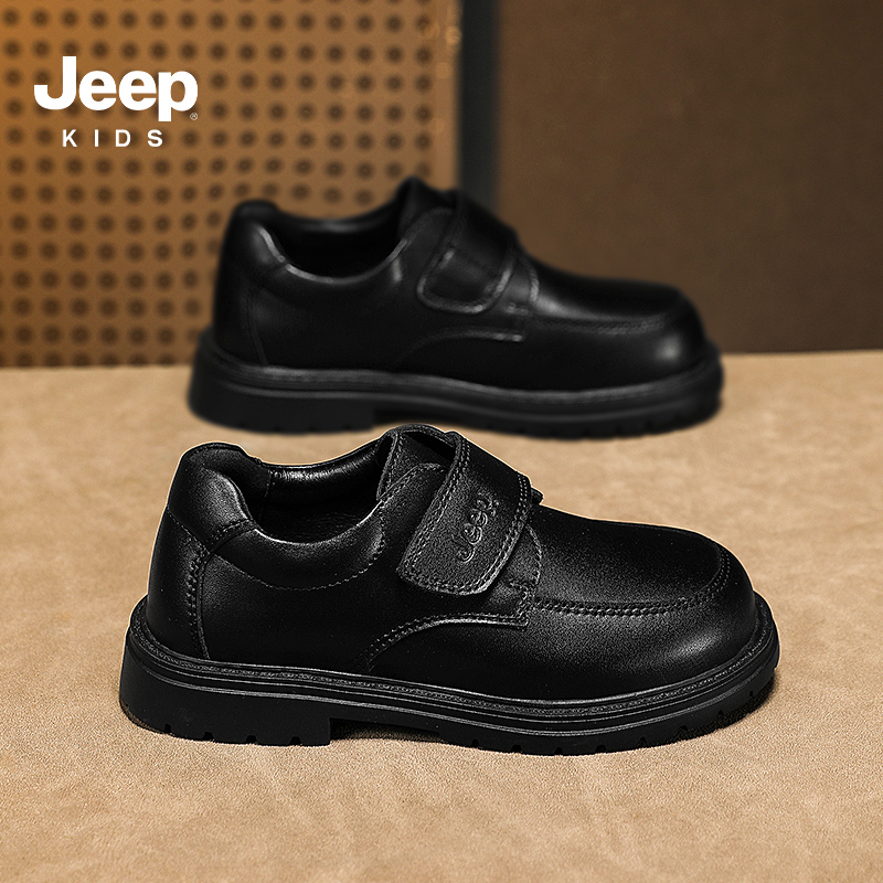 春秋童鞋 子学生校园单鞋 软底儿童黑色表演男孩演出鞋 jeep男童皮鞋