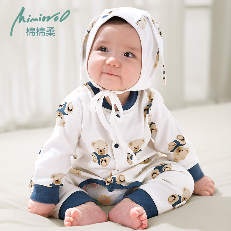 婴儿衣服宝宝开裆连体衣秋季 男女婴幼儿哈衣春秋 睡衣纯棉a类薄款