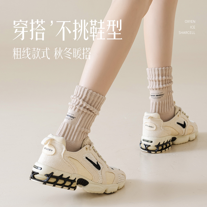 堆堆袜女秋冬纯棉加厚保暖粗线高筒网红外穿潮流长袜2025新款 爆款