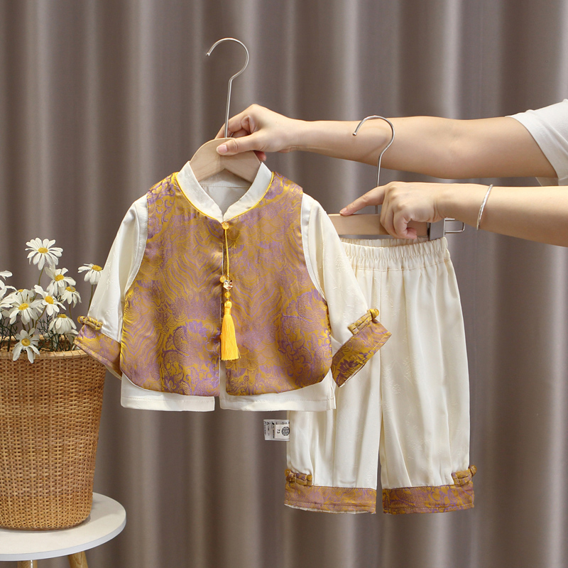 婴儿一岁生日宴衣服 唐装 宝宝周岁礼服春秋套装 男宝抓周服女宝中式