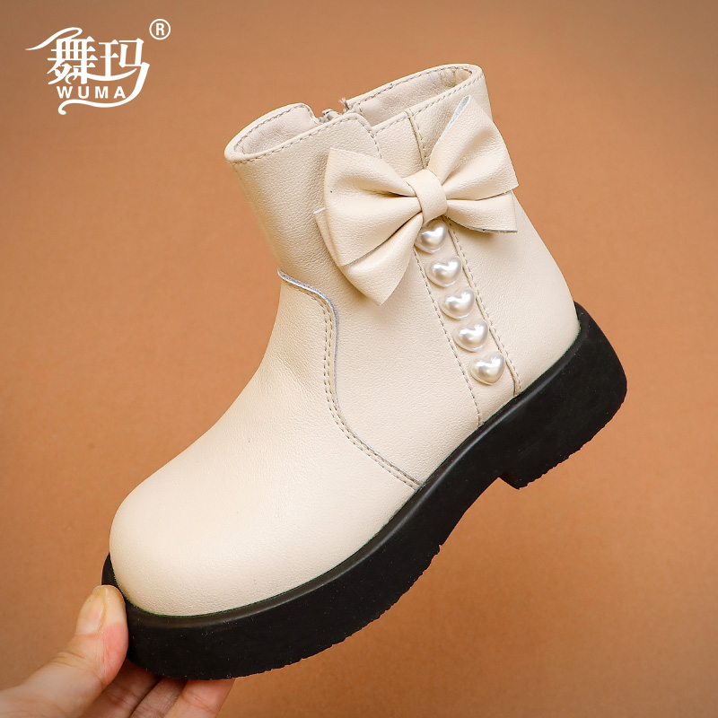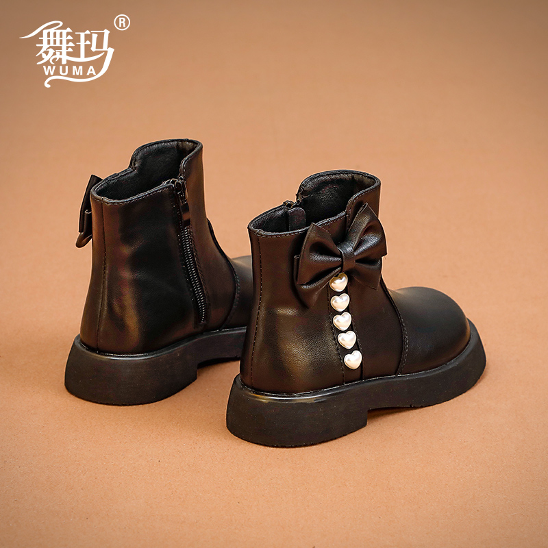 宝宝加绒冬季 秋冬款 女孩马丁靴 子儿童真皮公主短靴2024新款 女童鞋