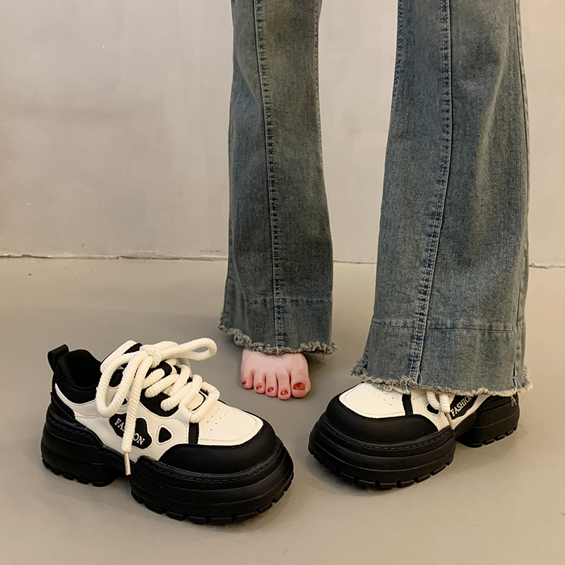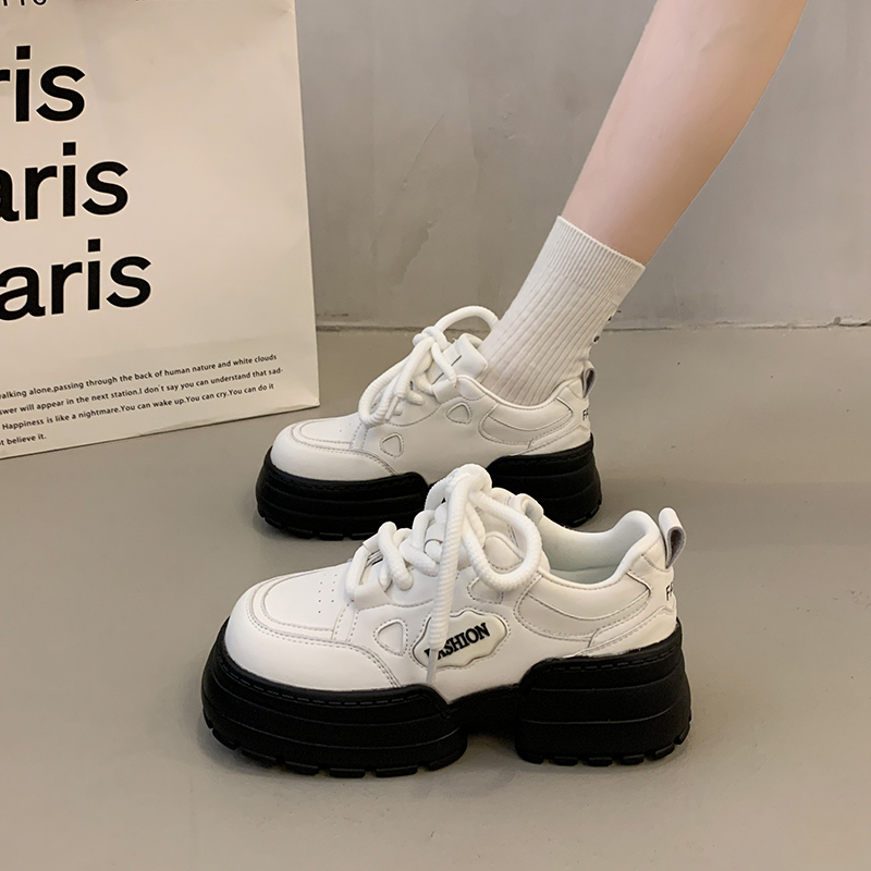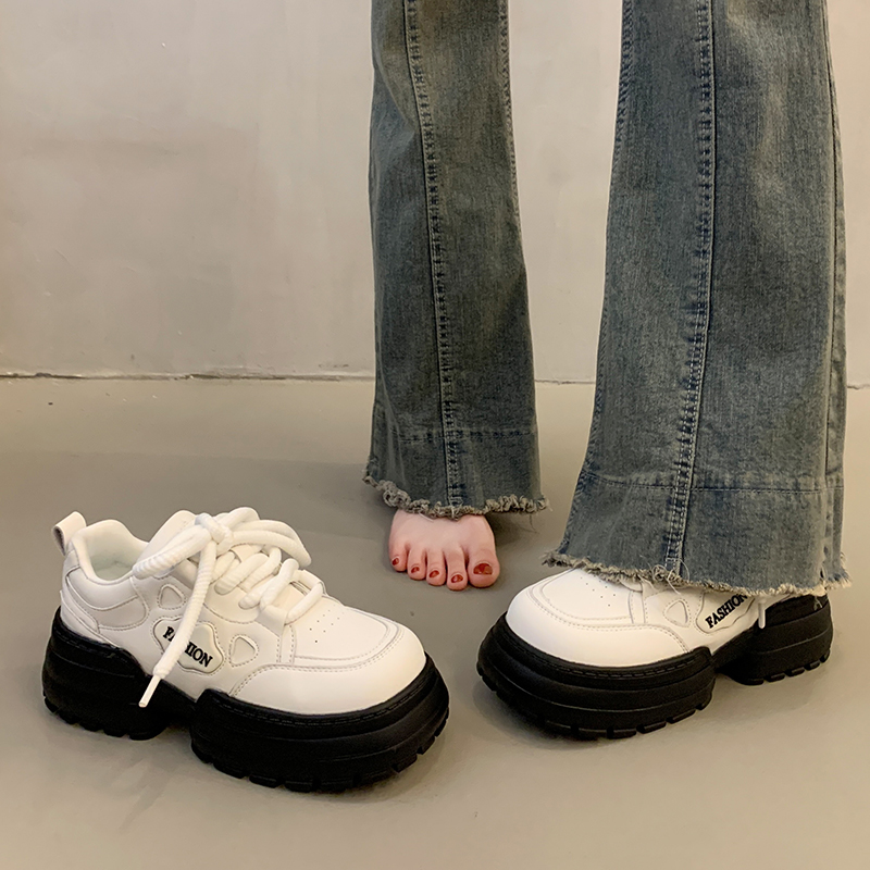 增高休闲运动鞋 爆款 2025新款 女春秋小众松糕厚底老爹鞋 百搭小白鞋