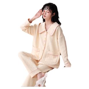 纯色加大码 套装 家居服 秋冬季 猫人女士睡衣空气棉夹层夹棉加厚长袖