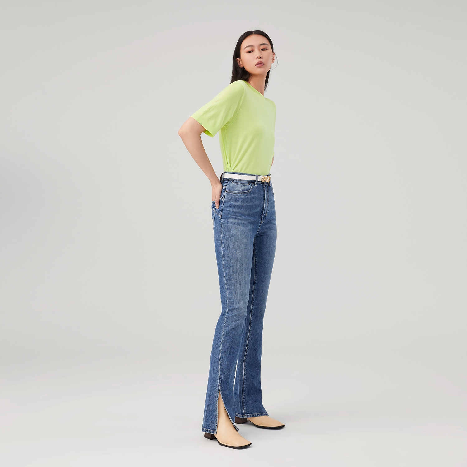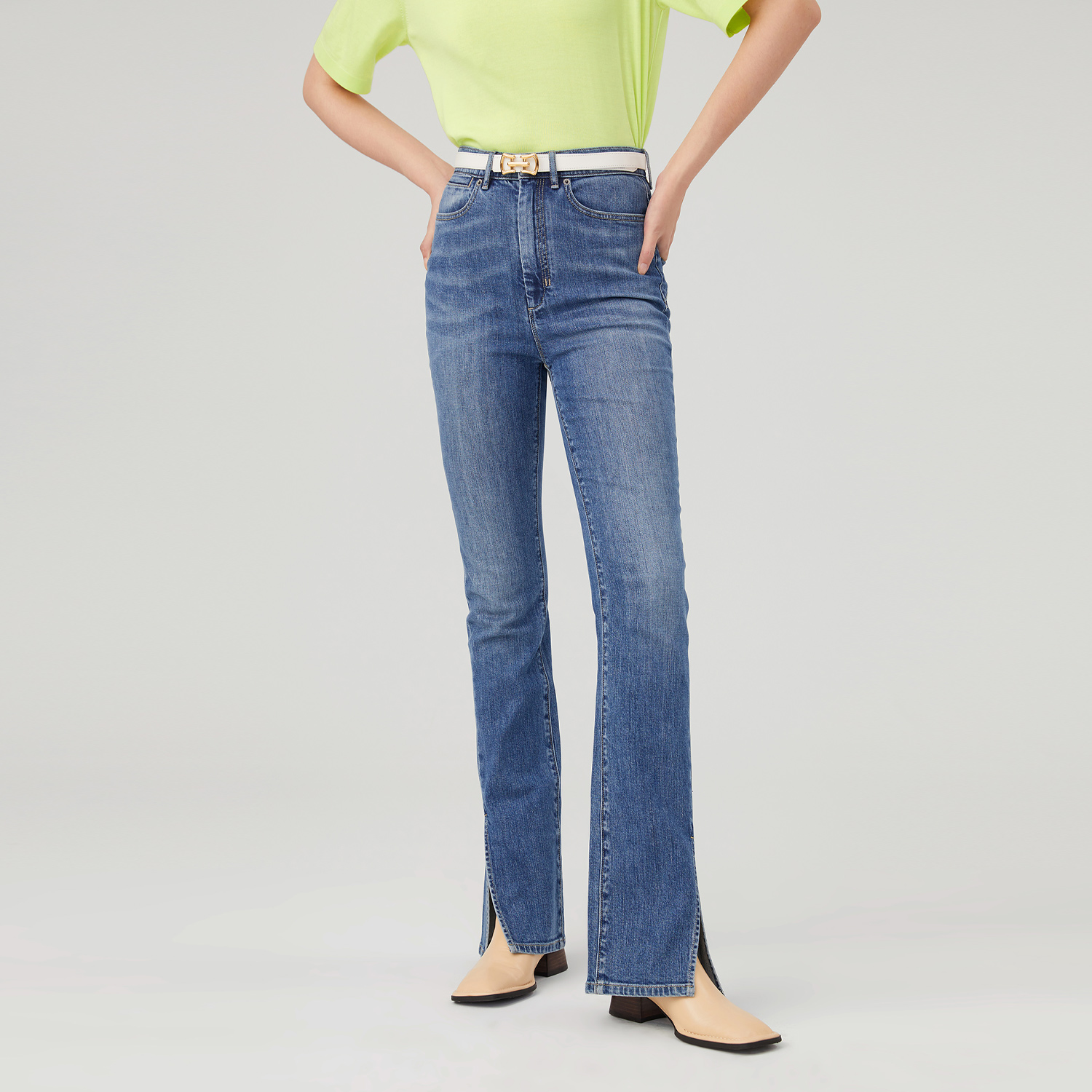 开衩牛仔喇叭裤 意大利进口面料高腰修身 女装 OVVOutlet秋冬新款