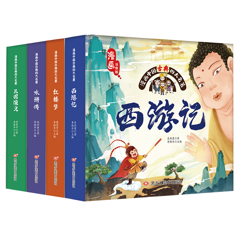 漫画中国古典四大名著彩色注音版 西游记儿童漫画书小学生一年级阅读课外书二年级必读绘本图画连环画书大全水浒传红楼梦三国演义