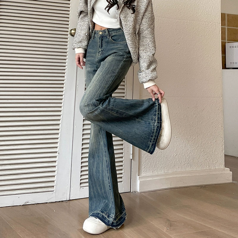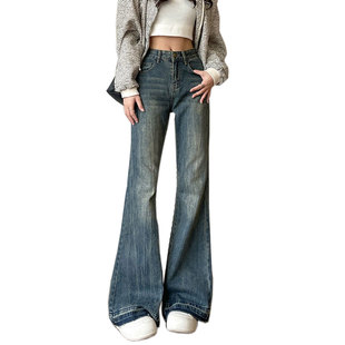 小个子穿搭高腰喇叭裤 自然涩美式 薄款 女2025春秋季 子 微喇牛仔裤