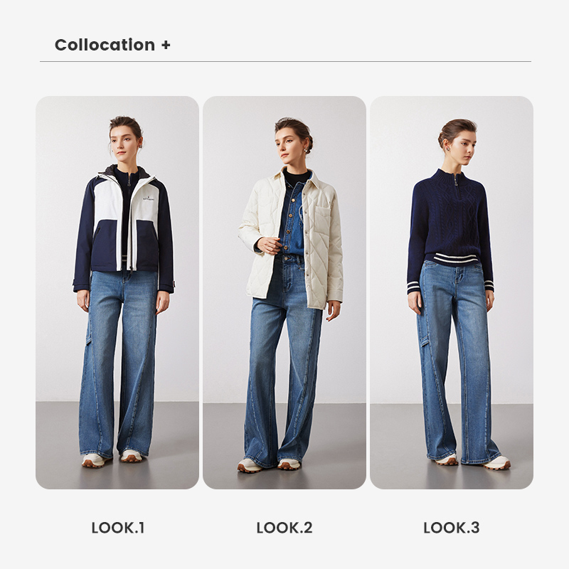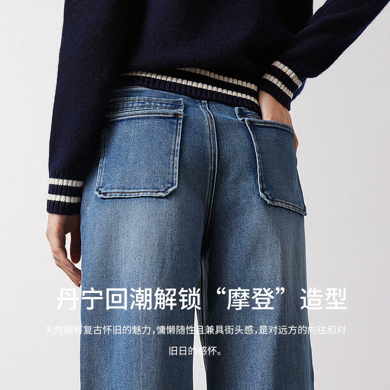 宽松加绒阔腿牛仔裤 2025年秋冬新款 女 太平鸟大直筒牛仔裤 广角裤