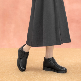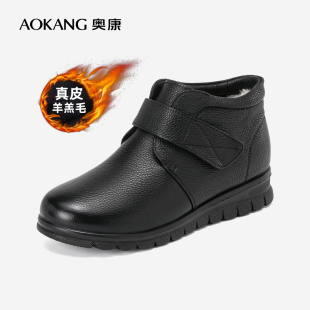 奥康女鞋 冬季 新品 女棉鞋 羊羔毛 套脚加绒保暖妈妈鞋 防滑 真皮