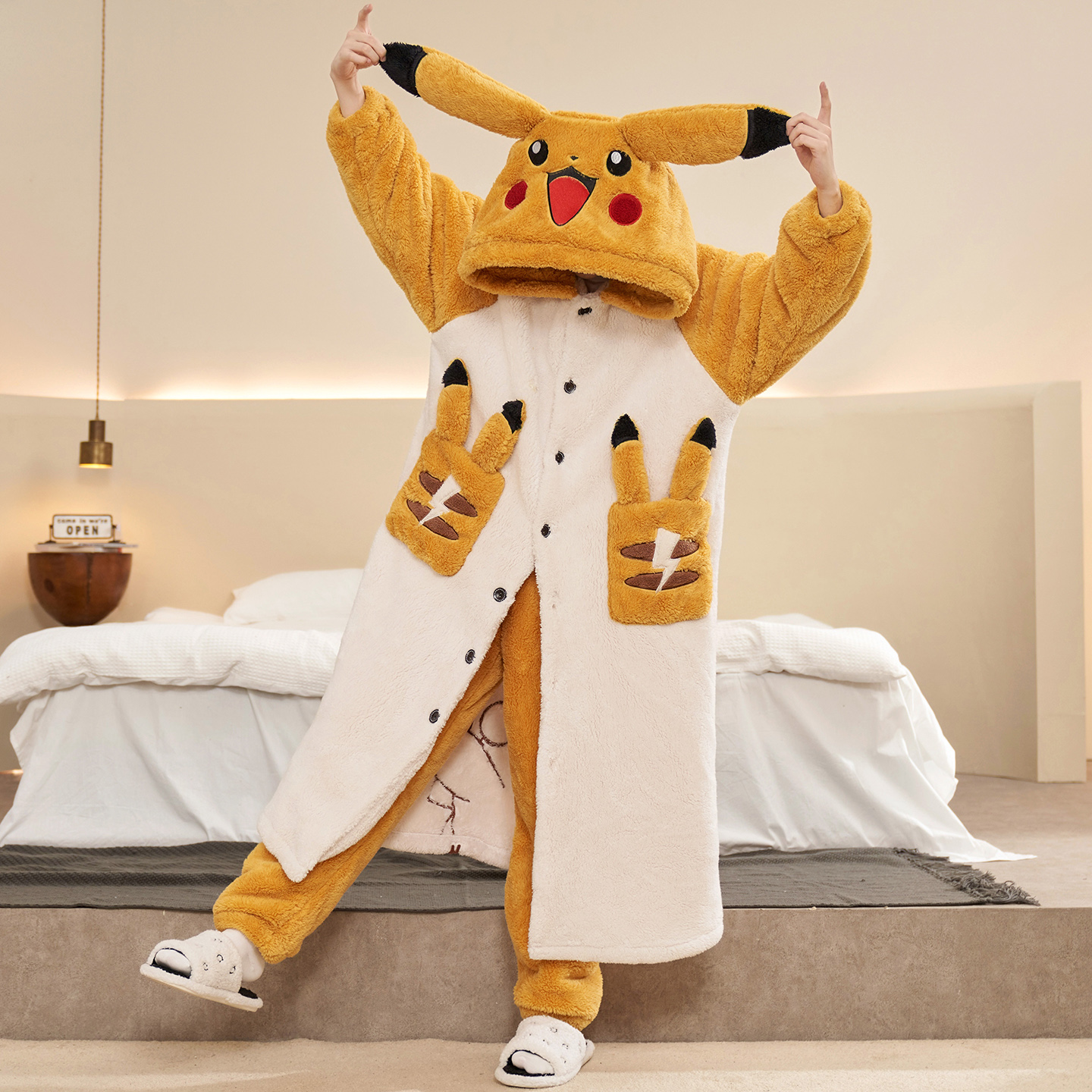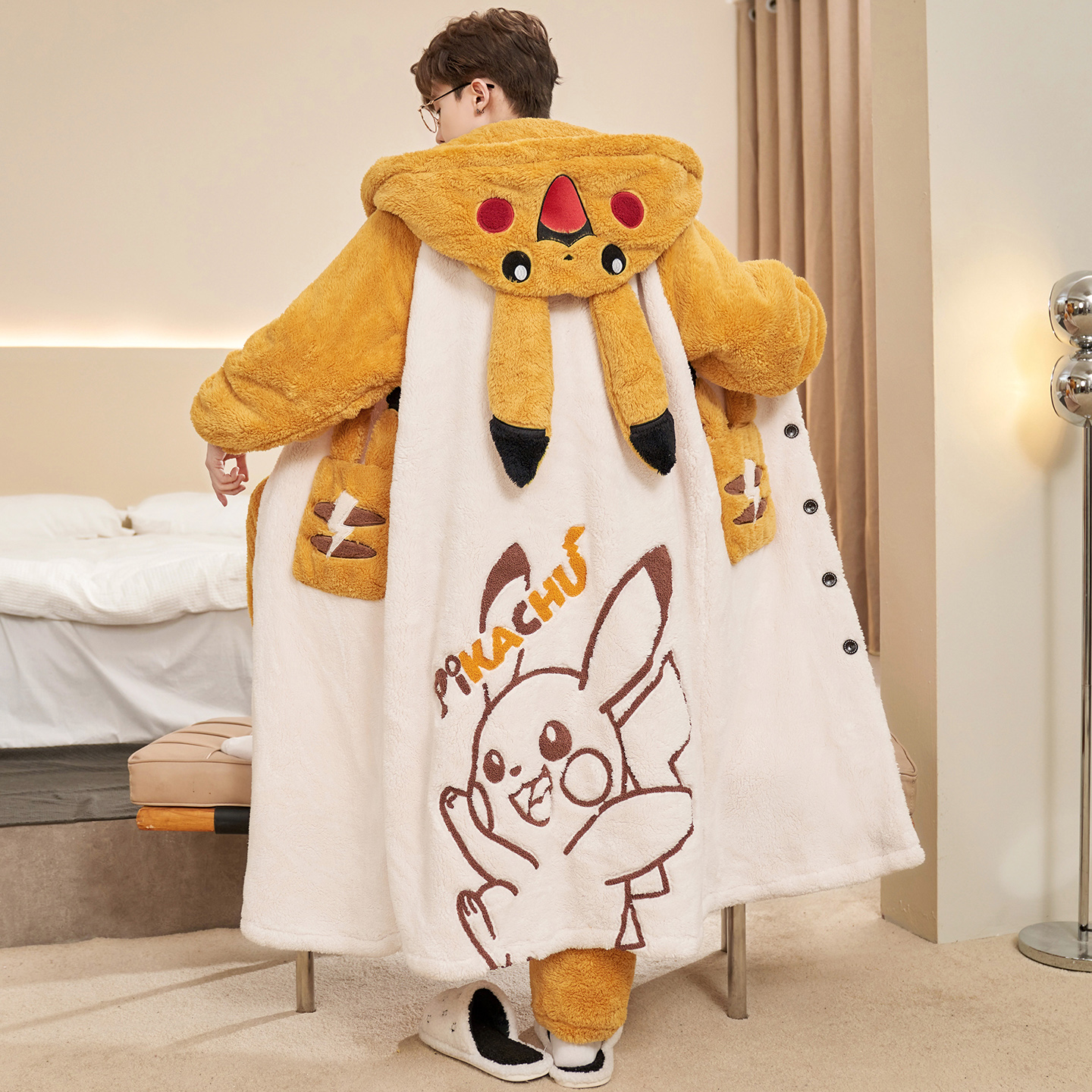 冬季 男款 青少年浴袍家居服 睡衣肥佬大码 皮卡丘加厚珊瑚绒睡袍男士