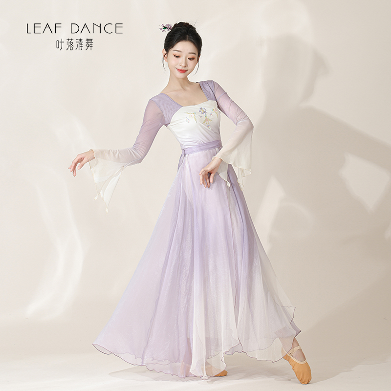 叶落清舞古典舞舞蹈服连体身韵纱衣中国舞飘逸渐变连衣裙演出服女