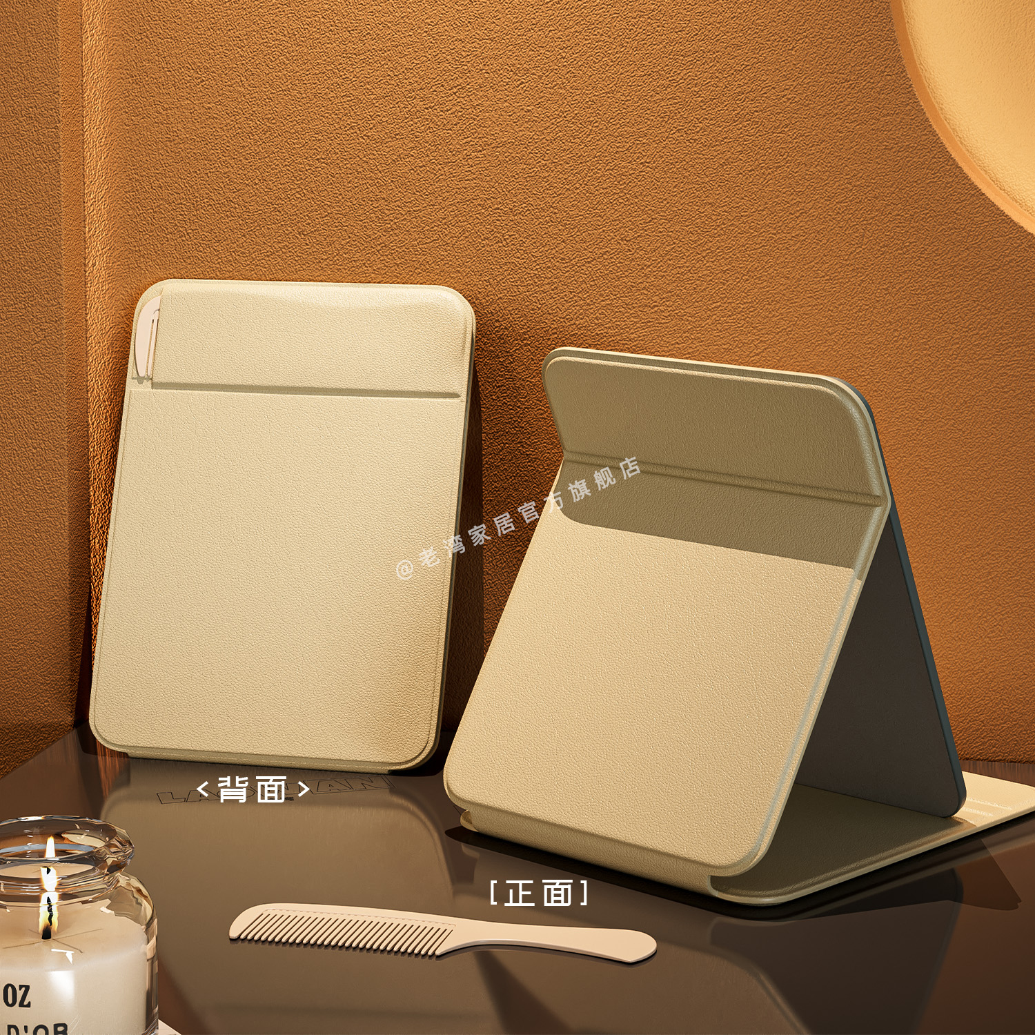 老湾镜子梳镜一体折叠化妆镜学生宿舍用ins风旅游随身便携带梳子