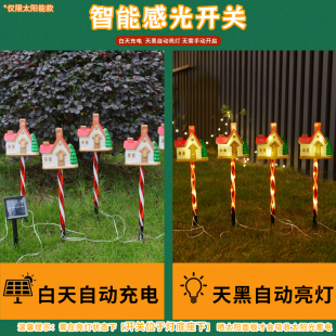 圣诞太阳能户外装 饰品灯糖果立体地插灯圣诞老人小鹿庭院花园摆件