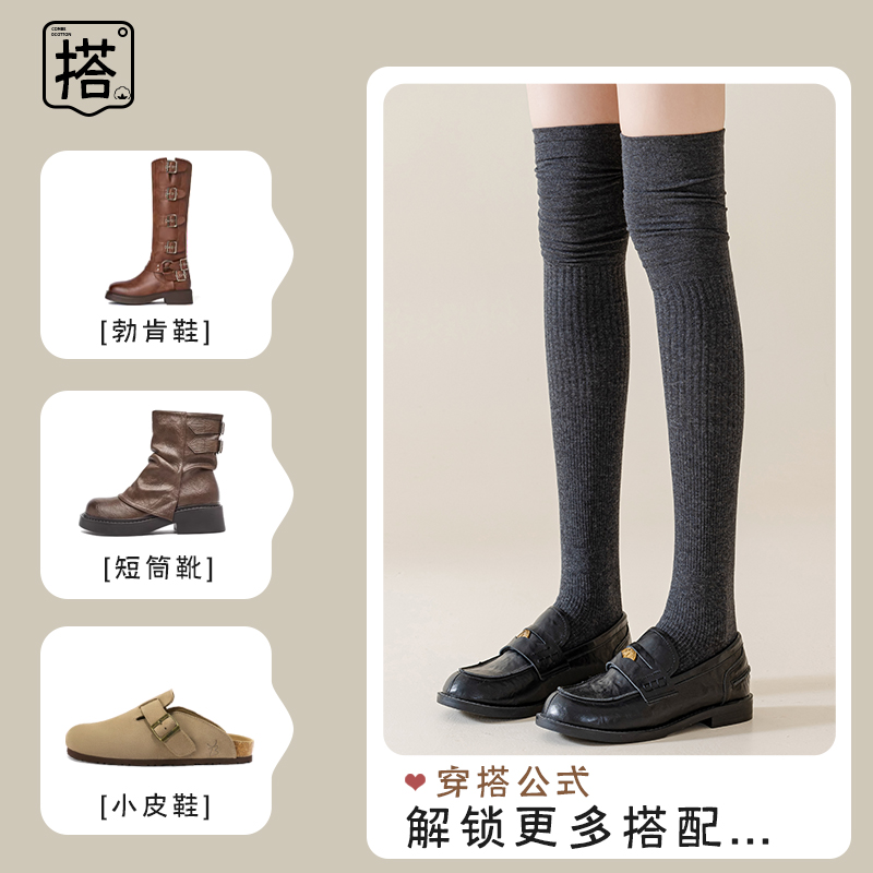 过膝袜子女春秋款 压力显瘦防滑大腿袜 美拉德堆堆袜纯棉配长靴秋季
