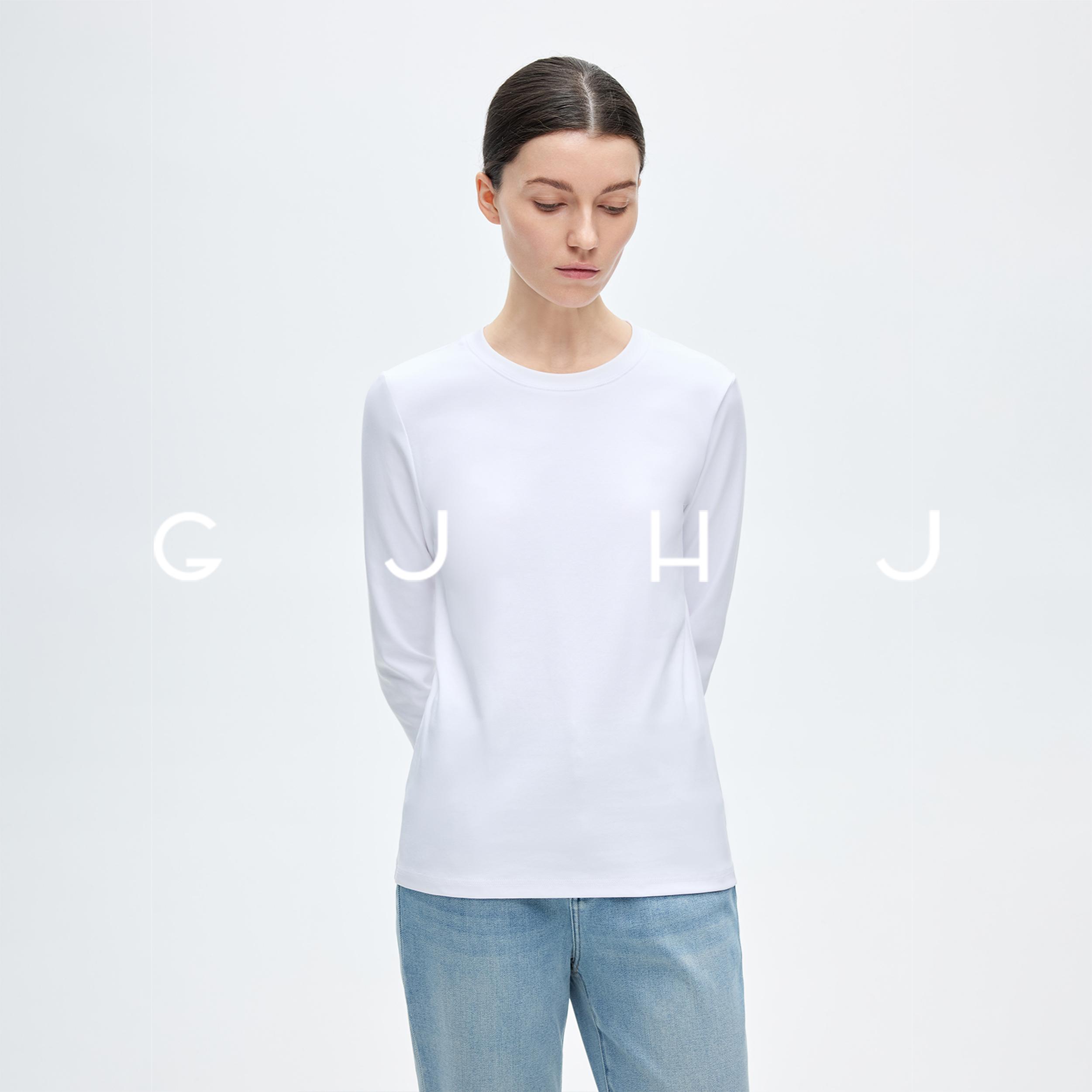 打底衫 长袖 通勤单穿 时尚 gjhj百搭净色圆领匹马棉T恤女