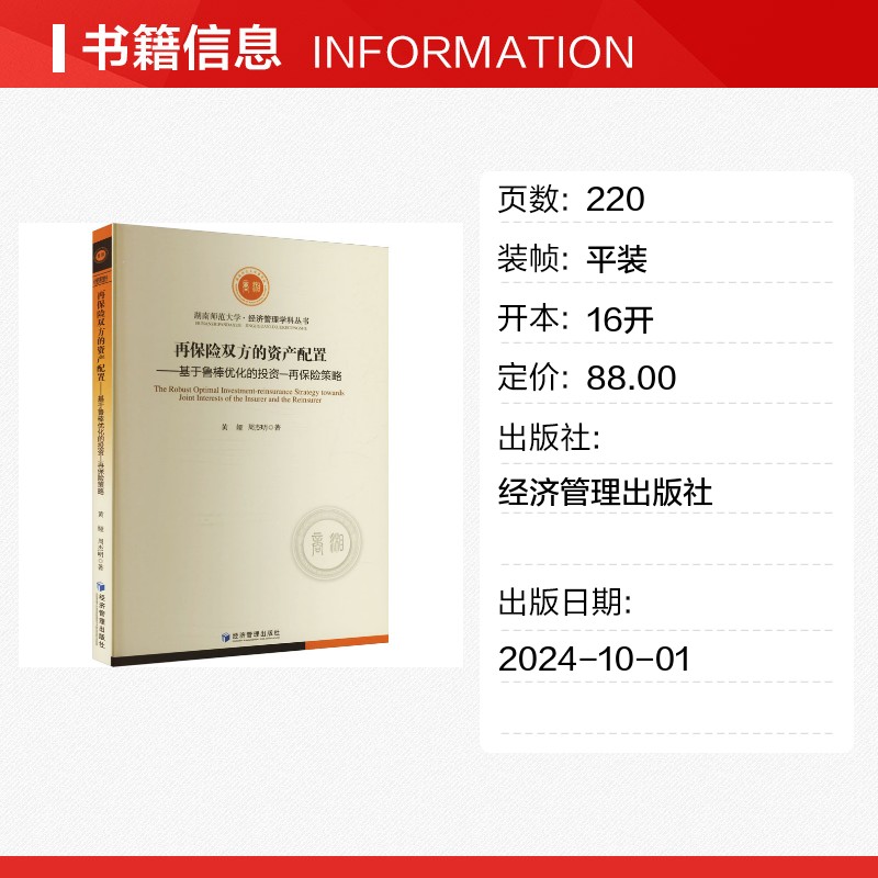 金融经管 资产配置——基于鲁棒优化 周杰明 再保险双方 励志 经济管理出版 再保险策略 图书籍 投资 社 黄娅 新华书店正版 著