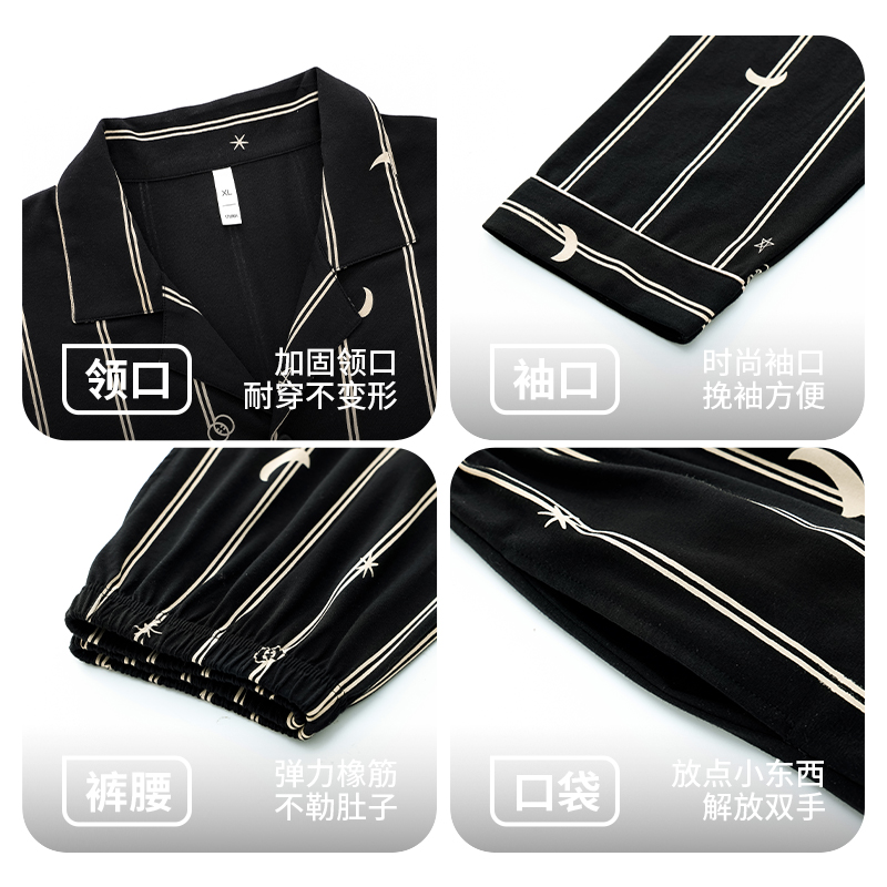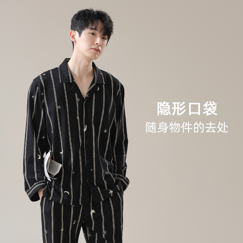 7A抗菌防螨条纹休闲家居服套装 A类纯棉长袖 春秋款 七色纺睡衣男士