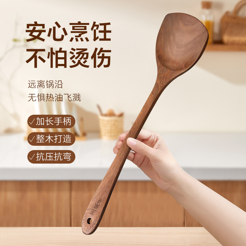王麻子家用锅铲饭勺木柄不烫手铲子不粘锅专用木制厨具官方旗舰店