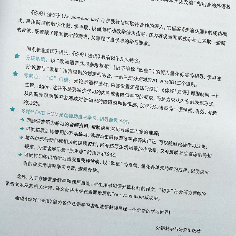 Taxi你好法语1234学生用书 实用法语教程 练习册 法语初级考试全攻略欧标A1A2B1级 外研社 大学法语自学入门教材辅导教材 任选