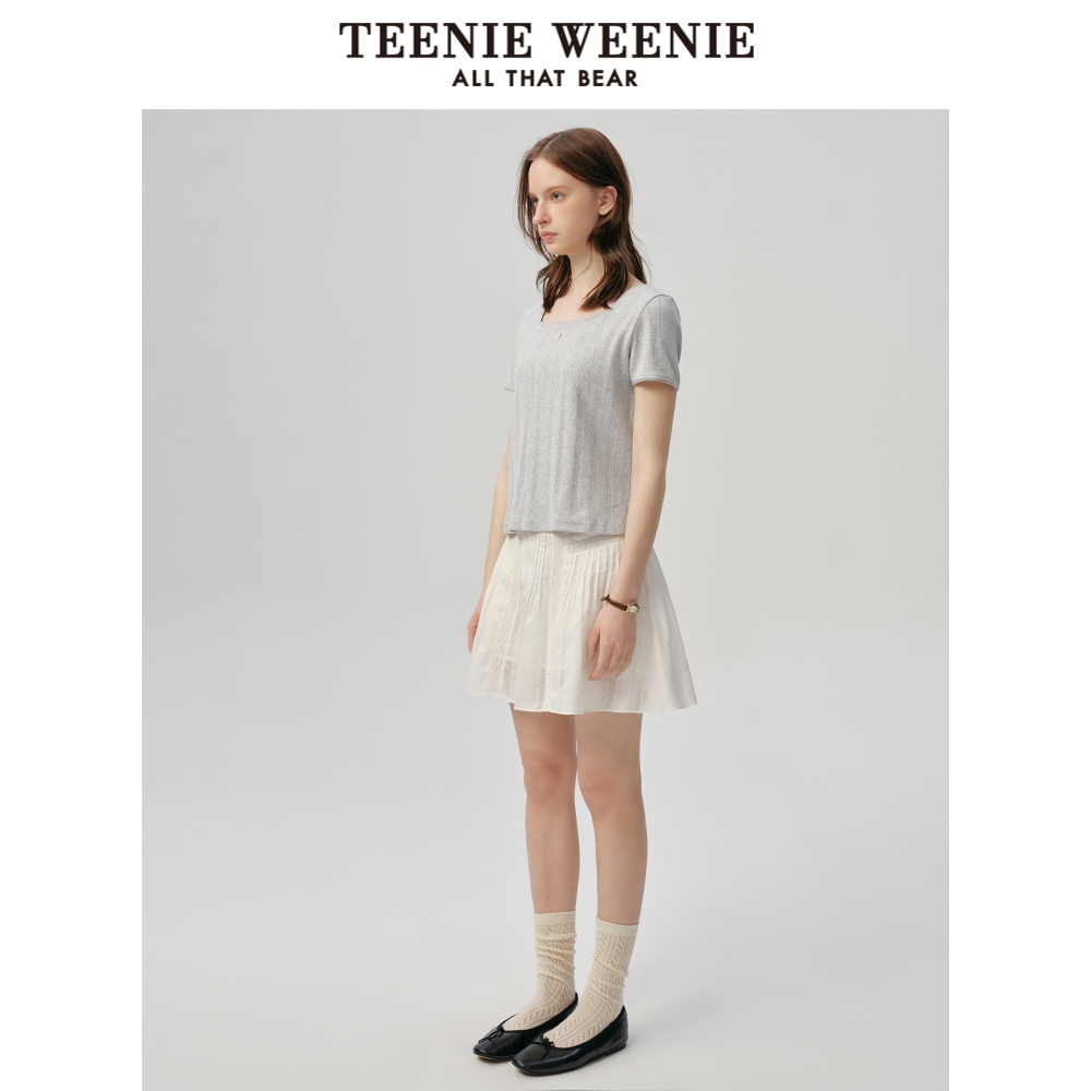 休闲花边纯色短袖 TeenieWeenie小熊女装 时尚 新款 圆领T恤2025夏季