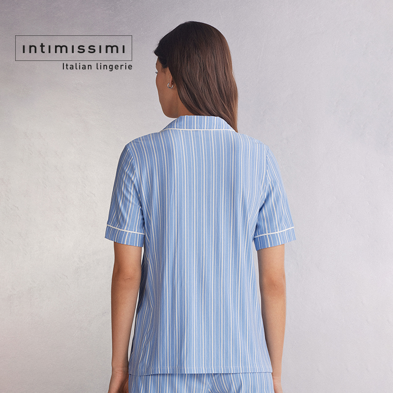 Intimissimi意舒漫时尚 睡衣上衣CMD949 莫代尔条纹翻领短袖