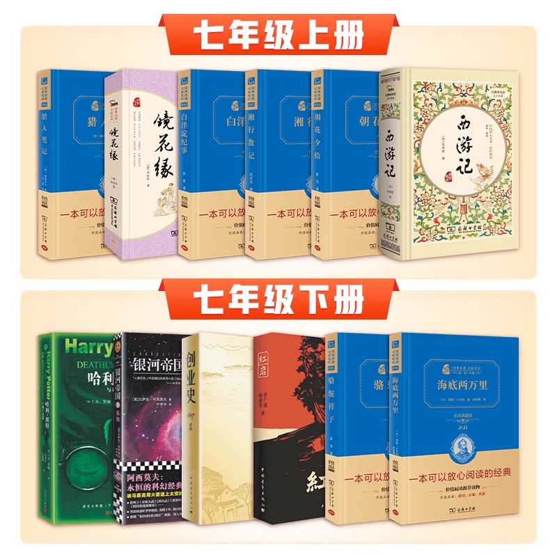 初中七年级课外名著全套12册西游记朝花夕拾海底两万里骆驼祥子红岩创业史银河帝国哈利波特等让学生真正读懂名著 读透名著