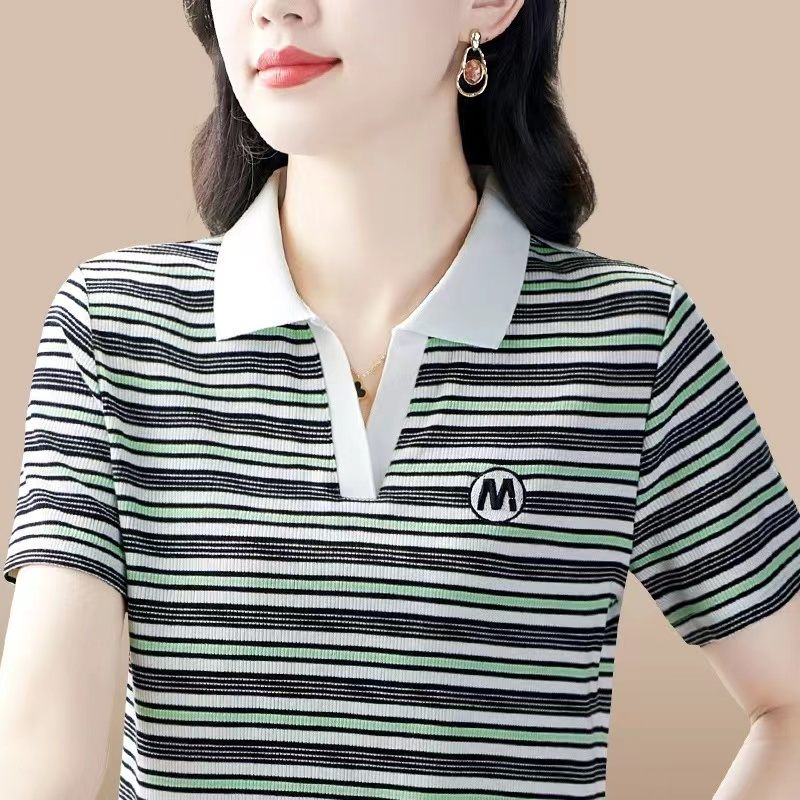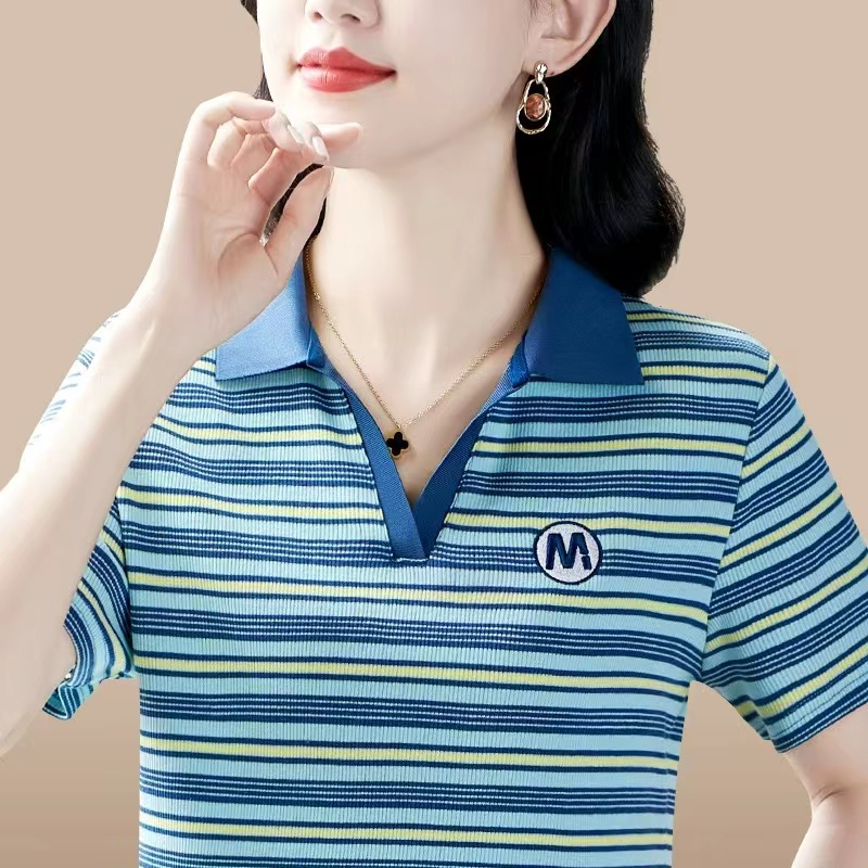 新款 T恤女夏季 休闲Polo领中年妈妈洋气减龄显瘦上衣 百搭短袖 时尚
