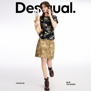 Desigual花朵满印爱心刺绣圆领短袖 上衣 女士T恤夏季