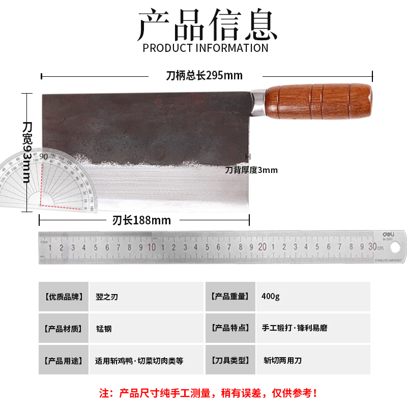 龙泉菜刀套装 锰钢锻打家用超快锋利厨师专用切肉切片砍骨刀具厨房